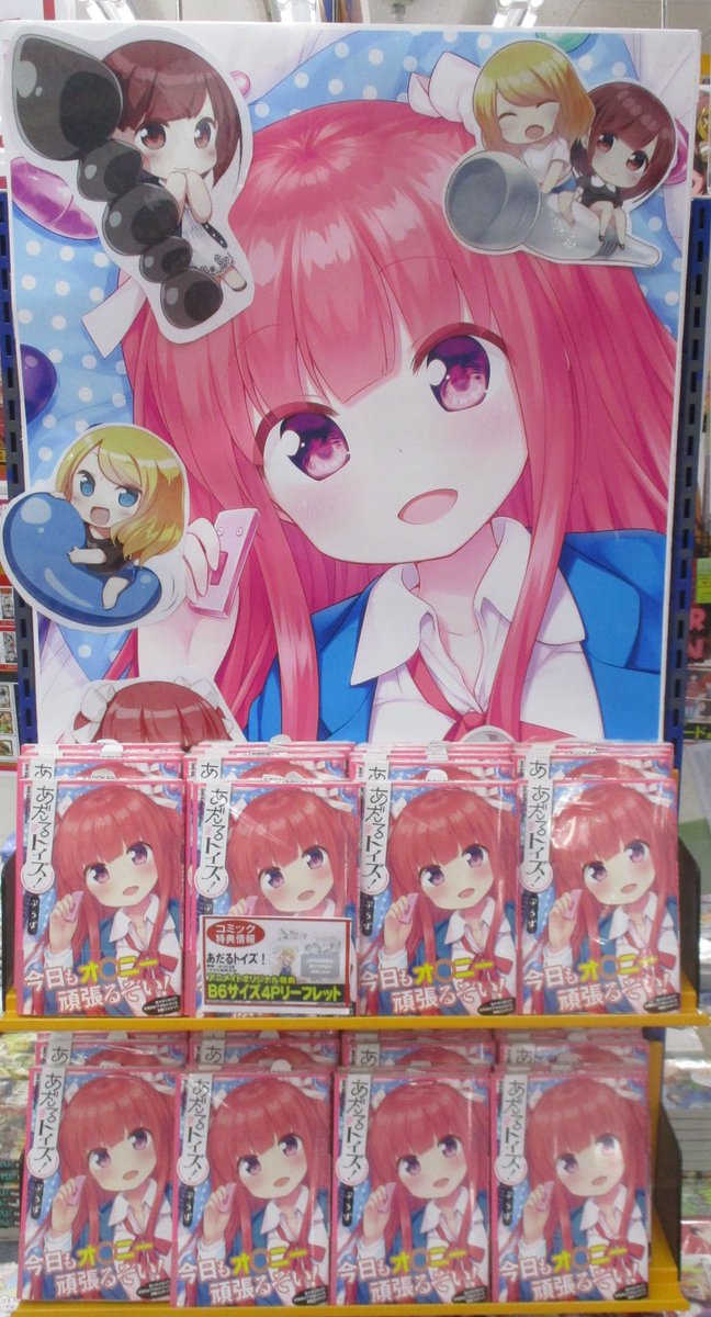 【大人の玩具コメディ!】ぷらぱ先生が描く「あだるトイズ!」が好評販売中☆当店2階にでは大展開中!気になる内容は・・・!読んでからのお楽しみっ♪#アニメイト特典 はB6サイズ4Pリーフレット! pic.twitter.com/tYpB56bwuW【商品情報】色々大丈夫!?な大人のおもちゃコメディ登場です!『あだるトイズ!』が当店1Fにて好評発売中♪とらのあな特典として《描き下ろし4Pリーフレット》を先着でプレゼント♪ 複製原画展示中♪ #あだるトイズ pic.twitter.com/m3cn1Rsv0j本日1月9日は『あだるトイズ!』の発売日です。ア○ルトグッズ会社で働く女の子の漫画となっています。興味を持たれましたら手に取っていただけると幸いですヾ(????)ノ" pic.twitter.com/e107uFwhlz改めて見るとデカデカとオ◯二ー頑張るぞいとか言ってるけど、『あだるトイズ!』はあくまでもア○ルトグッズを制作する真面目な漫画であって、オ○ニーはついででしてるだけですので、恥ずかしがることもなく安心して手にとっていただけるかと思い… twitter.com/i/web/status/9…あだるトイズって、要するに大人の玩具会社でバイトして、色々なおもちゃを紹介したり、実践したりする漫画なんですよ、これ以上はピー音出るからこれ以上のあらすじは察して下さいあだるトイズ! あだるトイズ! コミックス情報! / ぷらぱ - ニコニコ静画 (マンガ) nico.ms/mg292722